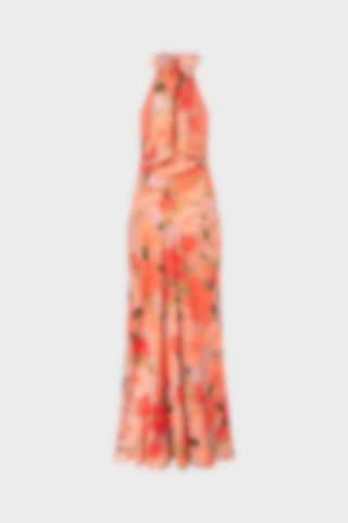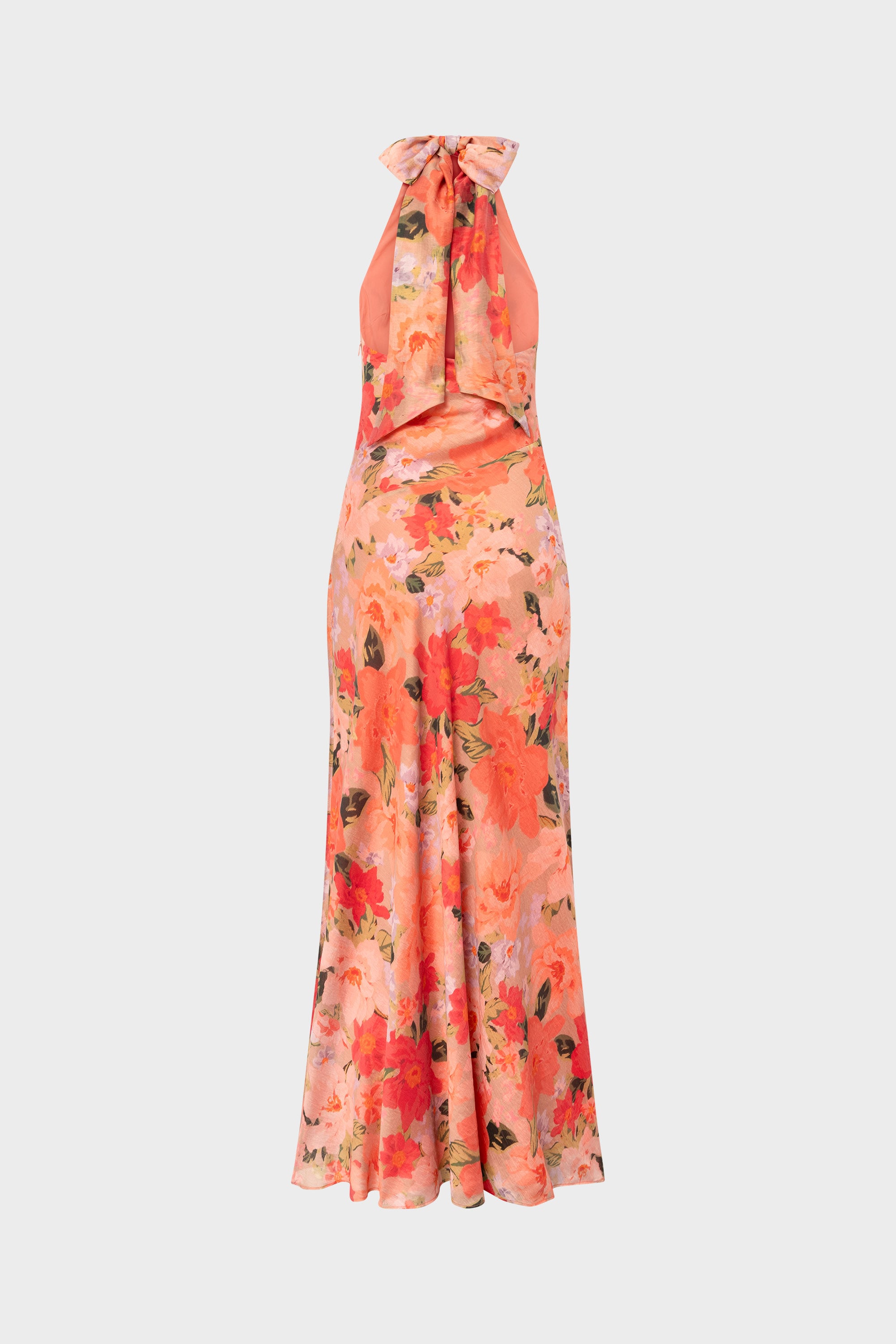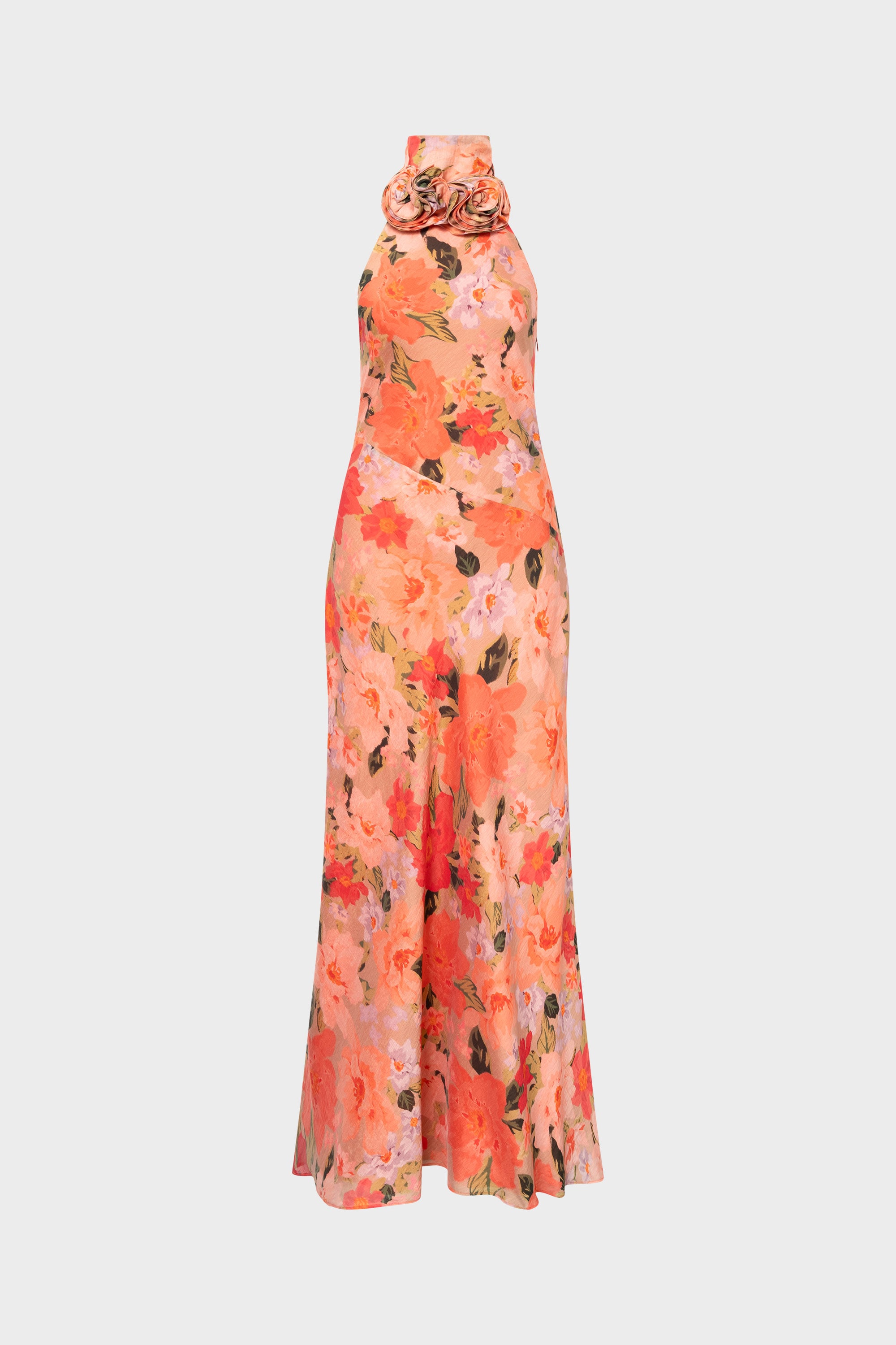 Launching in April. The Acacia Dress features a halter neckline accented with sculpted rose details, creating a distinctive and elevated look. Its fluid silhouette extends to a maxi length, complemented by a concealed side zip for a clean finish. Delivered in a full-length polybag with hanger.