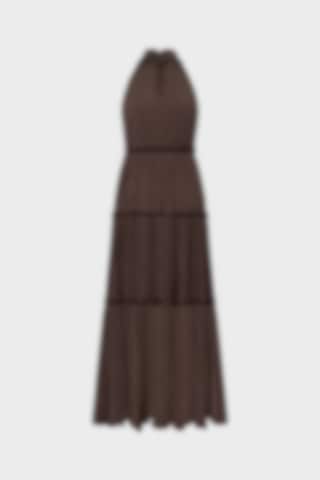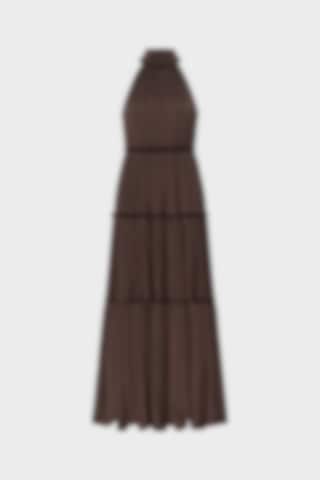 Launching in April. The Aster Dress is designed with a halter neckline and a softly tiered silhouette, enhanced by a subtle creased effect and delicate frill detailing. The back features a loop-and-button closure, complemented by a concealed side zip for a smooth fit. Falling to a graceful maxi length, it brings an effortless sense of ease to any occasion.