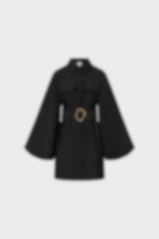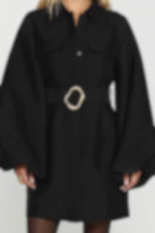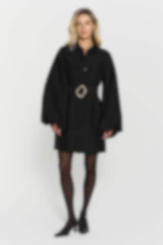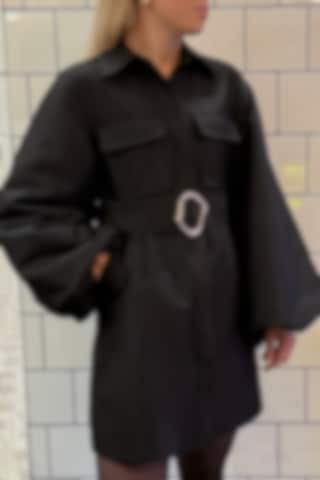 The model is 171 cm tall and wears size 36. The Cornia Dress features long bold puff sleeves and a flattering waist belt, creating a timeless, feminine silhouette.
