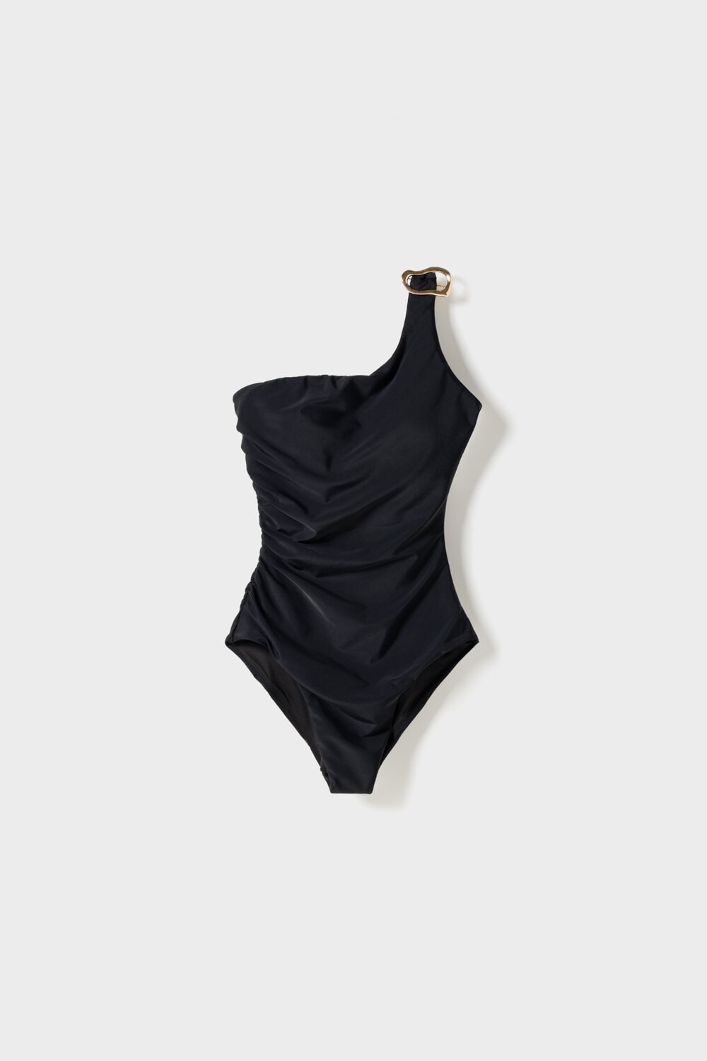 The Elma Swimsuit features an elegant one-shoulder design with a gold embellishment for a touch of glamor. With subtle side ruching and medium back coverage, it's fully lined for comfort and style.