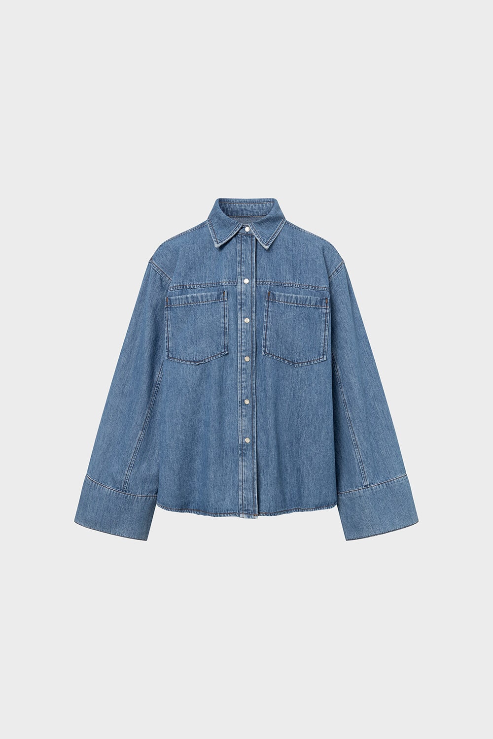 The Shari Denim Shirt combines oversized design with refined button detailing. It features wide sleeves and cuffs, with large chestpockets.