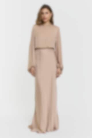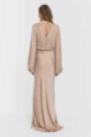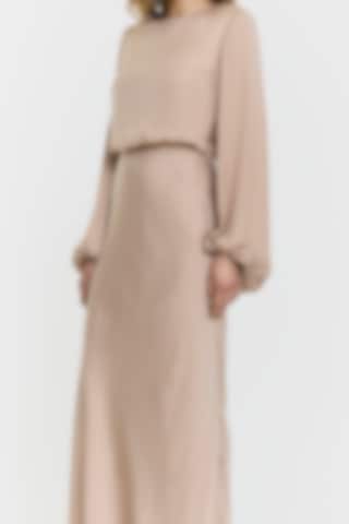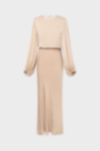 Launching in April. Note: This style has a longer fit and was designed with extra length. The Juliette Dress is designed in a fluid fabric with a graceful maxi silhouette. It features balloon sleeves with elastic cuffs, an overlapping back with a delicate tie at the neck, an elastic panel at the back, and a hidden zip. Fully lined for a refined finish.