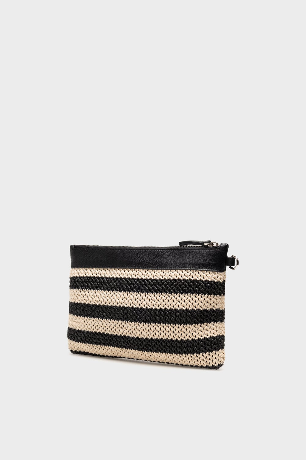 The Allie Clutch is crafted from paper straw with leather details, offering a natural texture and refined finish. Designed with a top zip and a short wrist strap, it’s compact yet versatile, perfect for carrying your essentials and pairing with the Aline Beach Bag.