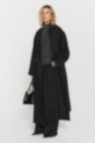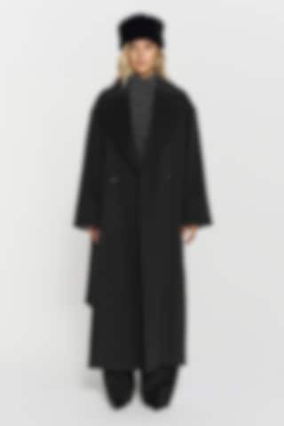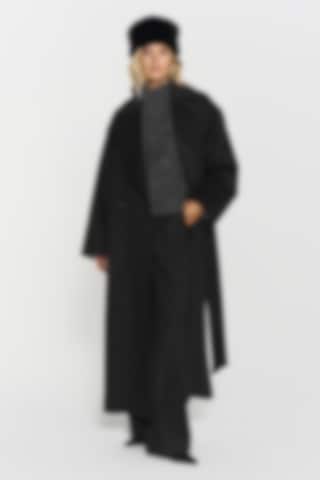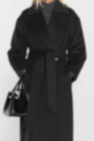 The Roya coat is crafted from a soft wool-blend and features a long, oversized silhouette with a belted waist, two pockets, and a full lining.
