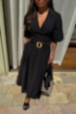 The Lou Dress offers a refined and modern take on the classic shirtdress. It features short wide sleeves, a hidden zip, and godet insert at the skirt for added shape and movement. The midi length completes the clean, structured silhouette.
