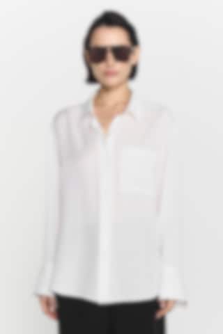The Kiara Fluid Shirt features luxurious lyocell for a fluid feel, an oversized fit, and adjustable cuffs, combining comfort with effortless style.