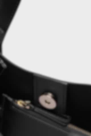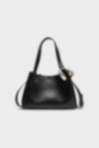 The Zina Bag, crafted from 100% leather, features a matching interior pouch, magnetic snap closure, elegant gold embellishment, subtle logo detail, and a removable shoulder strap. Width: 25 | Height: 18 | Depth: 17 "