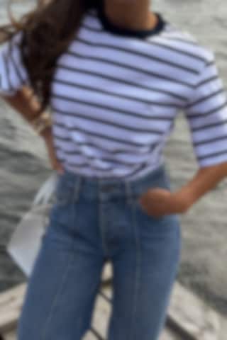 Our chic Chelsey cropped Tee features a relaxed design for a stylish and elevated look. Perfect for pairing with high-waisted trousers or skirt.