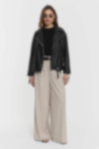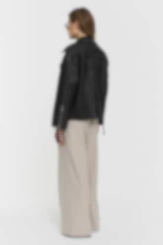 The Amari Leather Jacket has a subtly worn finish that gives it a refined, lived-in character. It features an oversized, boxy fit with zip closures at the front and sleeves, while the full lining adds structure and comfort.