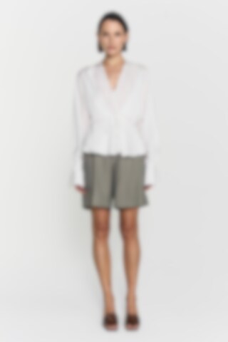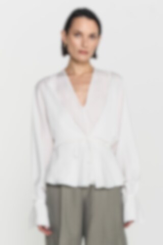 The Amra Blouse, crafted from high-quality lyocell, offers a loose fit with a versatile tie design and a stylish V-neck.