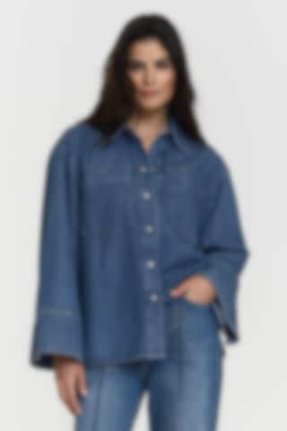 The Shari Denim Shirt combines oversized design with refined button detailing. It features wide sleeves and cuffs, with large chestpockets.
