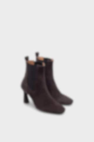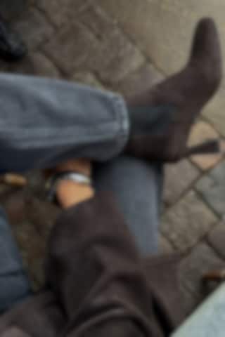 Please note: These boots run slightly small. For the most comfortable fit, we recommend choosing one size up. Introducing our Charleston Boots, crafted from luxurious suede with hourglass heels and a squared toe for a stylish silhouette. Featuring elastic panels at the sides. Heel-height: 9 cm.