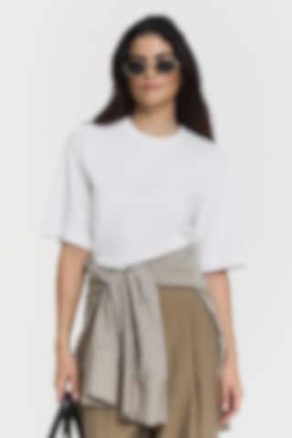 The model is 171 cm and wears size S. Our chic Chelsey cropped Tee features a relaxed design for a stylish and elevated look. Perfect for pairing with high-waisted trousers or skirt.