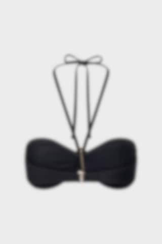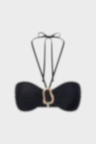 The Lemoni Bikini Top features an elegant bandeau shape with halterneck ties and subtle front ruching, accented by a gold embellishment. Adjustable at the back and fully lined for perfect comfort and style.