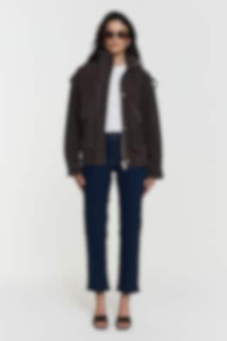 Wash comment: Wash separately inside out. No softener. Do not overdose detergents. Use detergent without bleach. May dry and wet bleed. Reshape when wet and let dry. Do not tumble dry. Low iron inside out. Can be dry cleaned. Close zip when washing. Shrinkage maximum 2–3%.