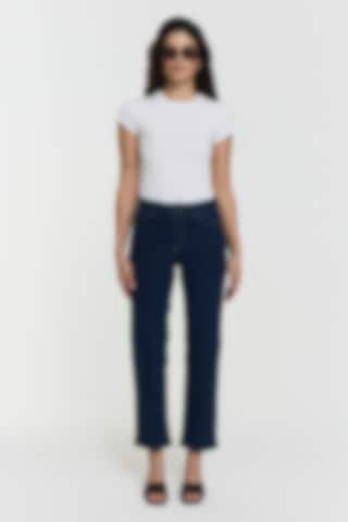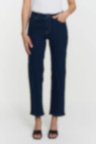 The Nelly Jeans are classic cropped, straight-leg jeans made with high-stretch fabric, offering a timeless fit and versatile style for any casual look. Featuring four pockets and a zip-and-button closure.