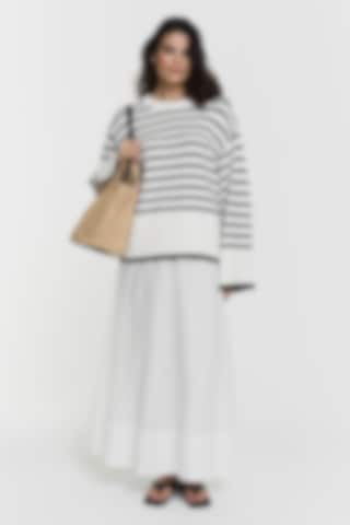 The Adoni Knitted Sweater is made from a soft cotton blend with a rounded neckline and wide sleeves. A relaxed yet refined piece with a clean, modern silhouette. Model is 171 cm tall and is wearing size S.