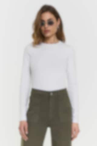 The Penny Long Sleeve Top is crafted from a soft cotton blend with a touch of stretch for a smooth, comfortable fit. Designed with a rounded neckline and a clean, fitted silhouette, it serves as an effortless everyday essential.