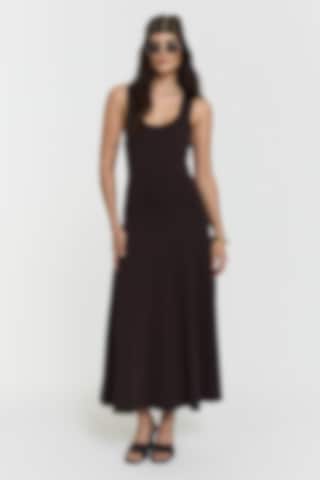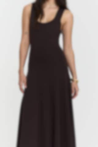 This knitted dress is designed with a fitted silhouette that flows into a subtle flare. The soft viscose-blend fabric offers a smooth, flexible feel, while the midi length adds an effortless sense of elegance.