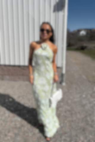 Discover floral allure in our exquisite Rose Dress. Adorned with intricate flower details and featuring a removable rose at the neck, this halter neck dress combines elegance with a hidden zipper and adjustable bands for a perfect blooming fit. The model is 171 cm and wears size XS/34