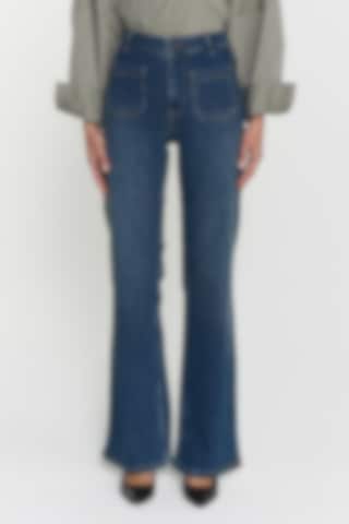 The model is 171 cm and wears size 26. Introducing our Cleo jeans, featuring a flattering high waist and flared leg for a vintage-inspired look. With a stretchy fit, 4-pockets with patch pockets front, along with a zip fly and belt loops.