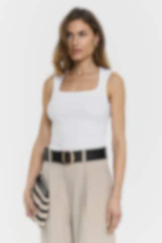 The model is 171 cm and wears size XS. The Hera singlet is a must-have wardrobe essential. Featuring a flattering squared neckline and a soft, ribbed texture, this versatile top can be dressed up or down for any.