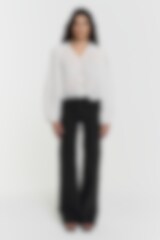 LIMITED EDITION. Crafted from 100 percent leather, the Zaria Jacket is defined by its structured silhouette and refined detailing. The design features pronounced shoulder panels that add subtle dimension, paired with patch pockets with flaps for a clean, utilitarian touch. A front zip closure with press buttons underscores the modern finish, while the elasticated hem brings soft volume and shape to the jacket. A contemporary layering piece with elevated character. Model is 176 cm tall and is wearing size S.