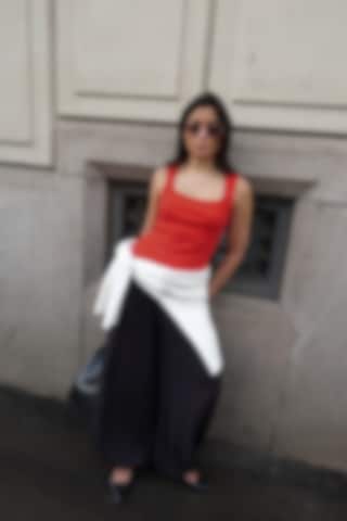 The softly draping fabric has a light, semi-sheer quality that enhances the fluid silhouette.