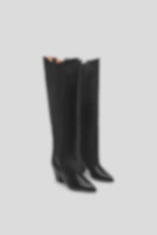 Introducing our Bonn Boots, crafted from luxurious leather with a slouchy design and pointy toe for a chic look. Featuring a block heel and side strap detail in croc, these boots are effortlessly stylish. The heel hight is 8 cm. Shaft height: 43 cm