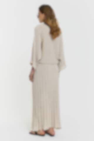 This ribbed knitted skirt features an long midi length, elastic waistband and a smooth lining for added comfort. Designed in a beige melange shade with a naturally soft drape.