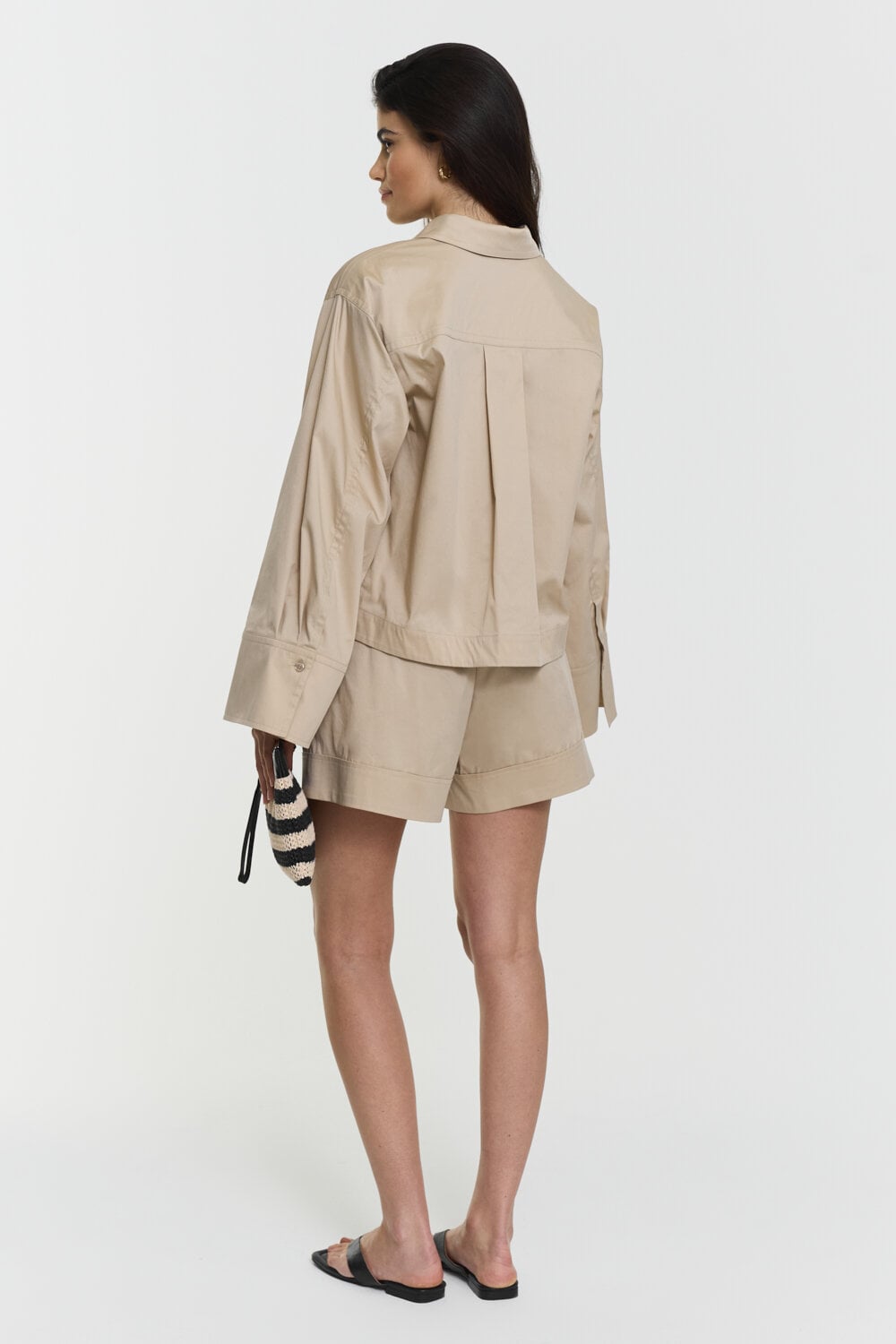 Material: This fabric combines the soft, breathable comfort of cotton with the strength and smoothness of nylon, creating a material that feels both natural and durable. A small amount of spandex adds gentle stretch, enhancing flexibility and helping the piece maintain its shape. The result is a comfortable, resilient blend with a clean, refined feel.