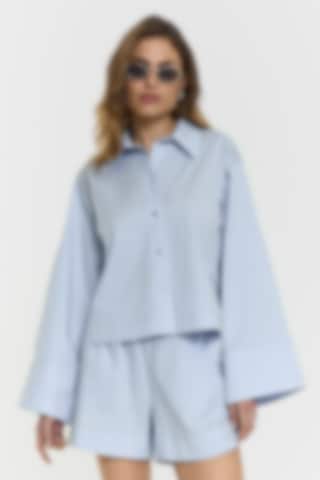 The Fiola Shirt combines edgy and ease in crisp cotton. Designed with a slightly cropped oversized silhouette, it features a back pleat, an extended placket, and wide sleeves and cuffs for a modern take on a classic shirt.