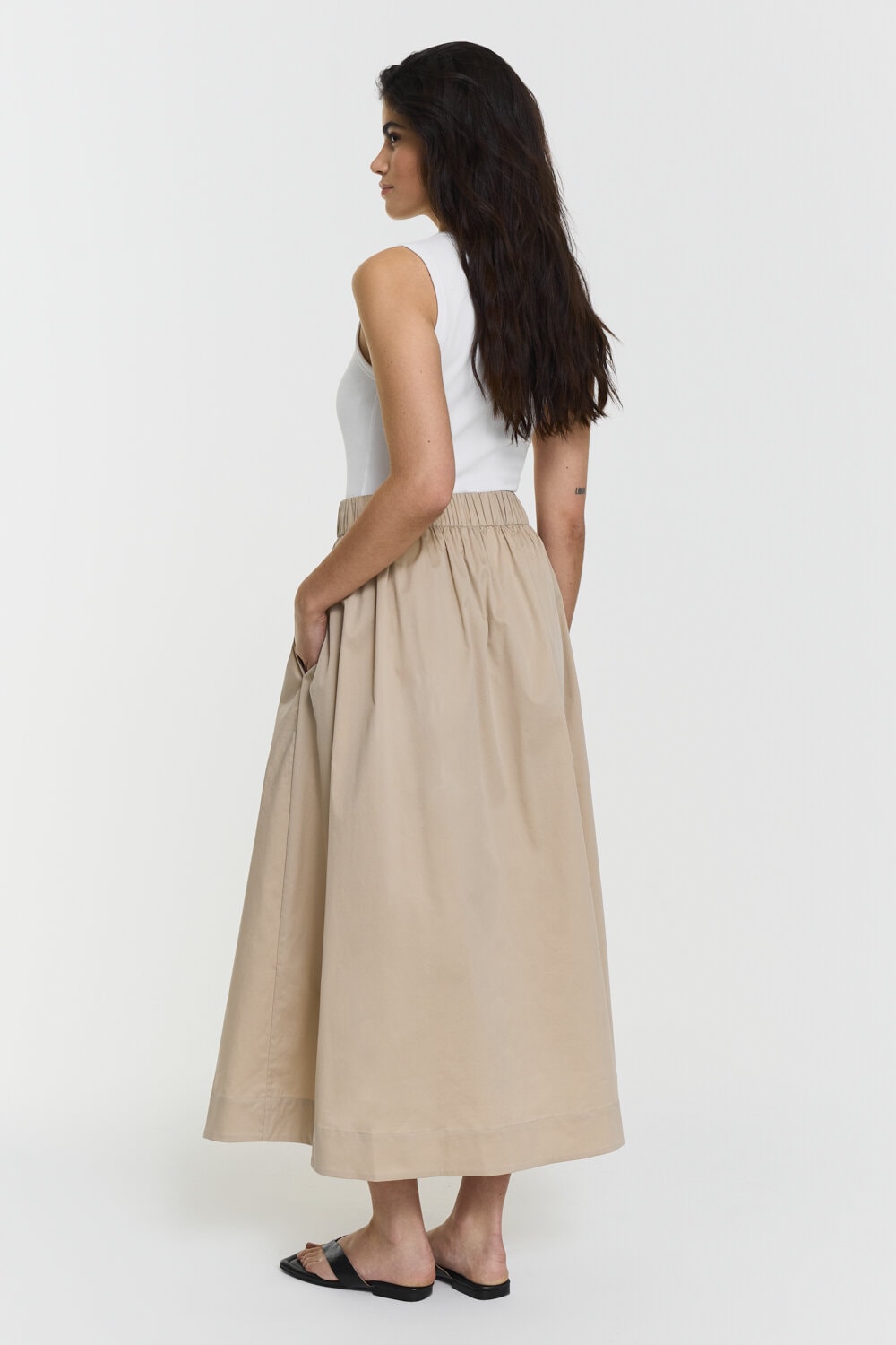 Discover comfort and style with our Freya Skirt. Crafted from a soft cotton blend fabric, it features an elasticated waist for the perfect fit. The ankle-length design is complemented by convenient side pockets.