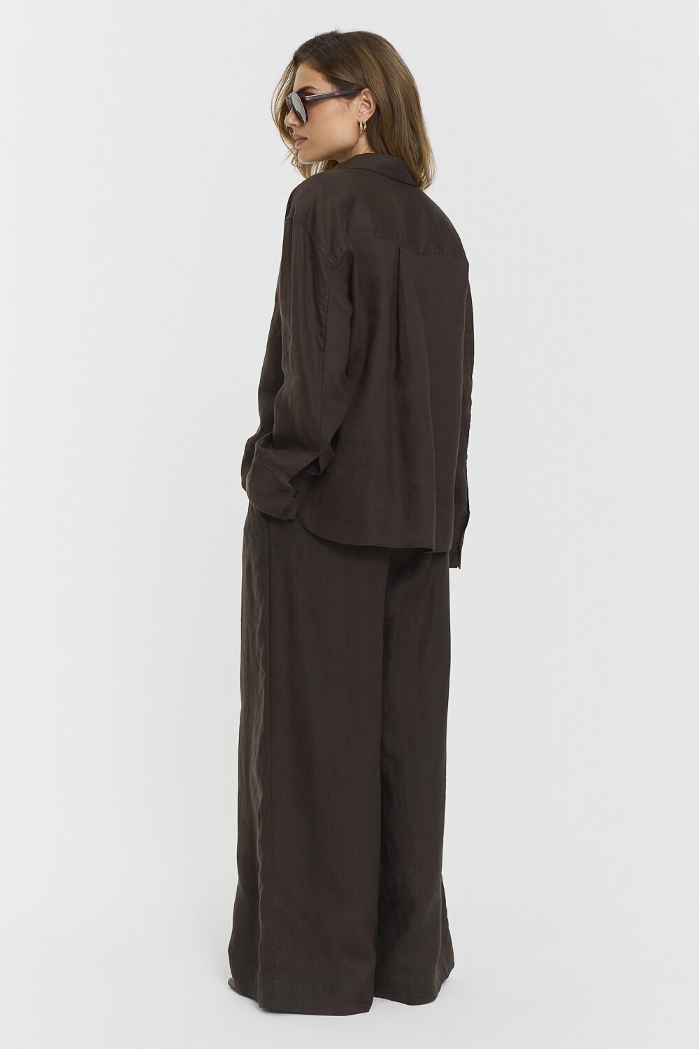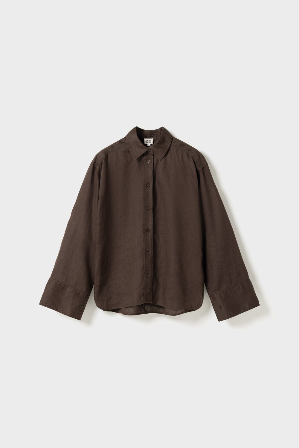 Introducing the Evianna Linen Shirt. Crafted from long fiber linen, this collared piece features a slightly relaxed fit, buttons down the front and two patch pockets on the chest. A versatile essential for timeless style.