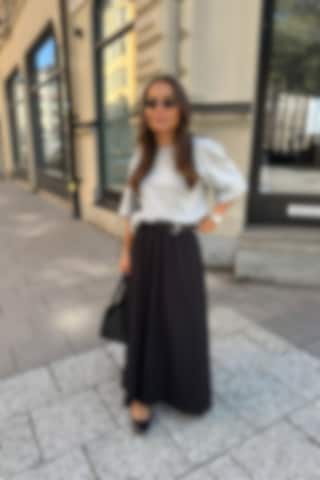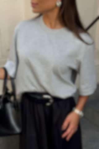 The model is 171 cm tall and wears size S. Our chic Chelsey cropped Tee features a relaxed design for a stylish and elevated look. Perfect for pairing with high-waisted trousers or skirt.