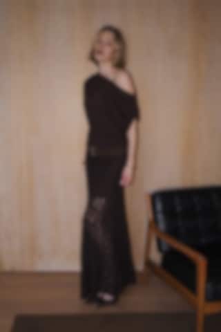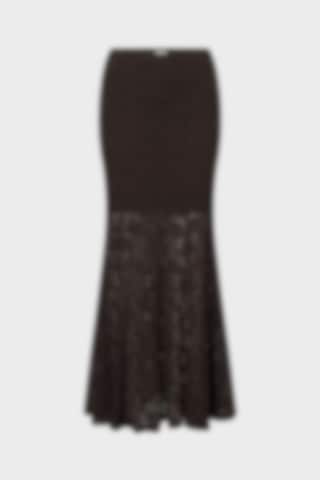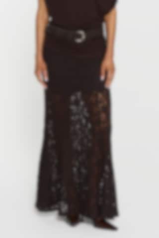 The model is 171 cm tall and wears size S. The Akasha Lace Skirt features a delicate creased texture, an elegant a-line silhouette and a removable lining for versatile styling options.