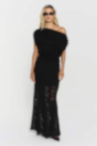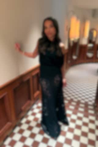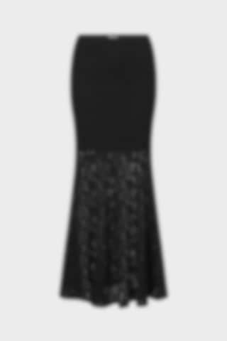 The model is 171 cm tall and wears size S. The Akasha Lace Skirt features a delicate creased texture, an elegant a-line silhouette and a removable lining for versatile styling options.