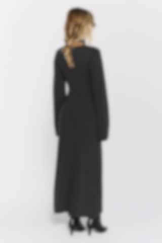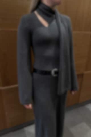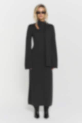 Please note: Due to the nature of the merino fabric, this dress runs shorter than expected. The model is wearing size S and is 171 cm long. The Alessandra Knitted Dress, made from 100% extra fine merino wool, features a chic v-neck with a delicate scarf detail.