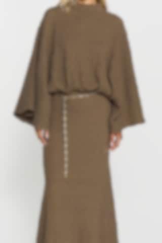 The model is 171 cm tall and wears size S. The Izlo Dress features a flattering inserted waist, elegant wide arms and a unique creased texture for a stylish look.