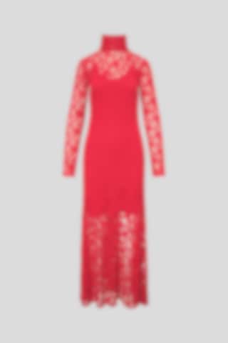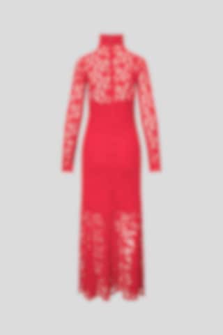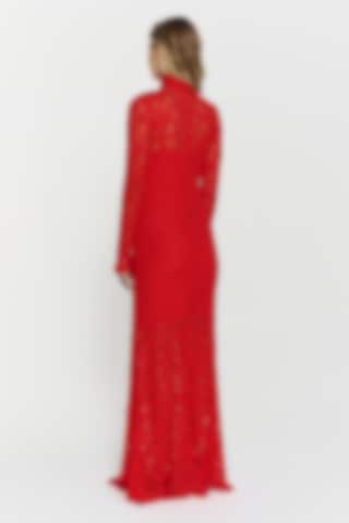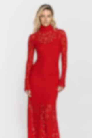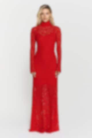 The model is 171 cm tall and wears size S. Elevate your evening with our Janasia Dress, a stunning lace gown in maxi length. Featuring a sophisticated turtle neck, hidden zip at the back, and slip dress lining. An undergarment dress is included.
