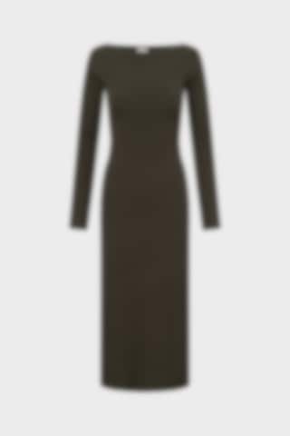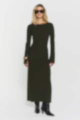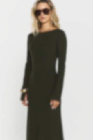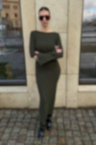 The model is 171 cm tall and wears size S. The Likha Knitted Dress features a chic boat neck, long sleeves with slit cuffs and a ribbed design for flattering fit.