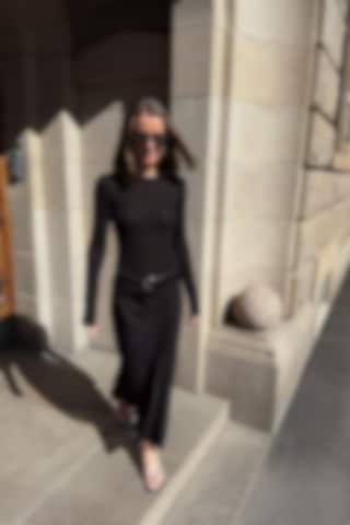 The model is 171 cm tall and is wearing size 36. Introducing our Tyne Skirt: Crafted from shiny satin in a midi length, featuring a flattering bias cut and comfortable elastic waistband.