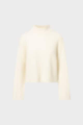 The Erika Sweater is crafted from a soft extra fine merino wool with a delicate cable-knit design. Featuring a rounded neckline, ribbed details, and subtle embroidery at the back of the neck, it blends elegance with cozy comfort.