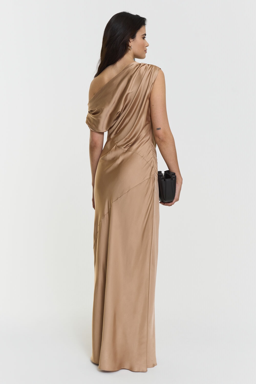 Launching in April. The Vanessa Satin Dress features a lustrous satin fabric, an elegant cowl neckline, and a flattering bias cut. Designed with a timeless maxi silhouette, it’s a refined choice for memorable occasions and arrives carefully packaged in a full-length polybag with hanger.
