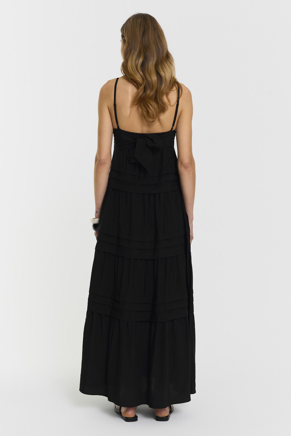 The Ramila Dress features a fluid silhouette with adjustable straps and a tied detail at the back. Designed with a hidden zip and full lining, it combines ease and sophistication in a flowing maxi length.