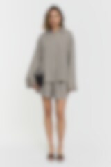 Wash comment: "GENTLE WASH SEPARATELY INSIDE OUT. NO SOFTENER. DO NOT OVERDOSE DETERGENTS. USE DETERGENT WITHOUT BLEACH. MAY DRY AND WET BLEED. RESHAPE WHEN WET AND LET DRY. DO NOT TUMBLE DRY. LOW IRON INSIDE OUT. CAN BE DRY CLEANED. SHRINKAGE MAXIMUM 2-3%. "