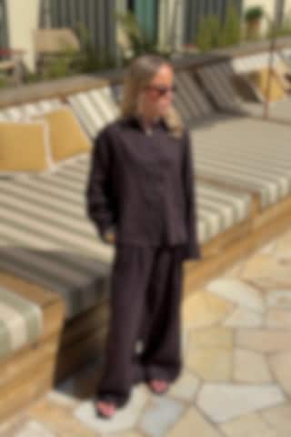The Aprilia Linen Trousers are crafted from premium long-fiber linen, combining a soft touch with an effortless drape. The relaxed wide-leg shape and elastic high waist create an easy silhouette, completed with practical side pockets for everyday wear.