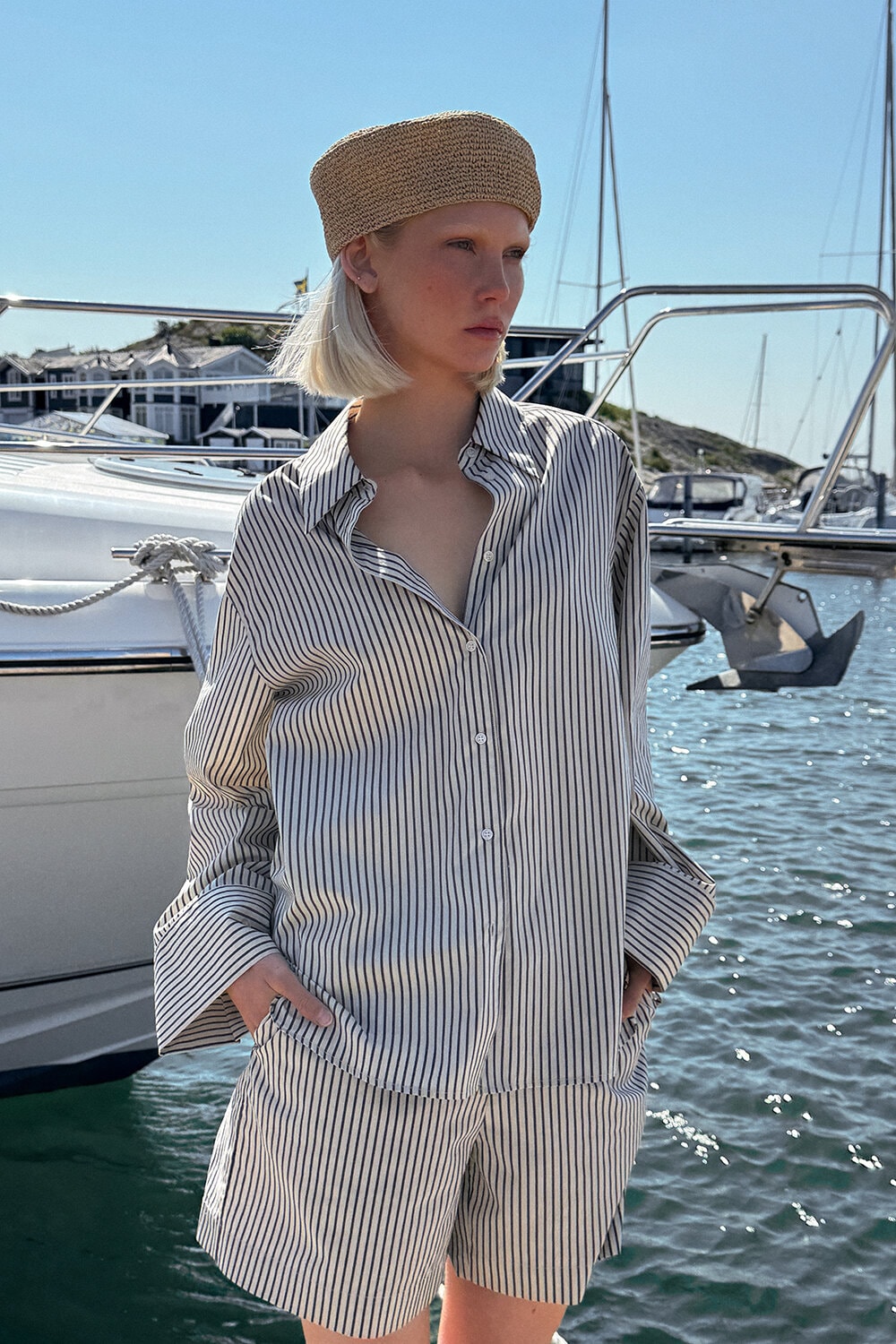 The Arwa Shirt is made from a soft, breathable fabric with a naturally fluid drape. Defined by its striped weave, it offers a light and relaxed feel that pairs perfectly with the matching Alisha Shorts.