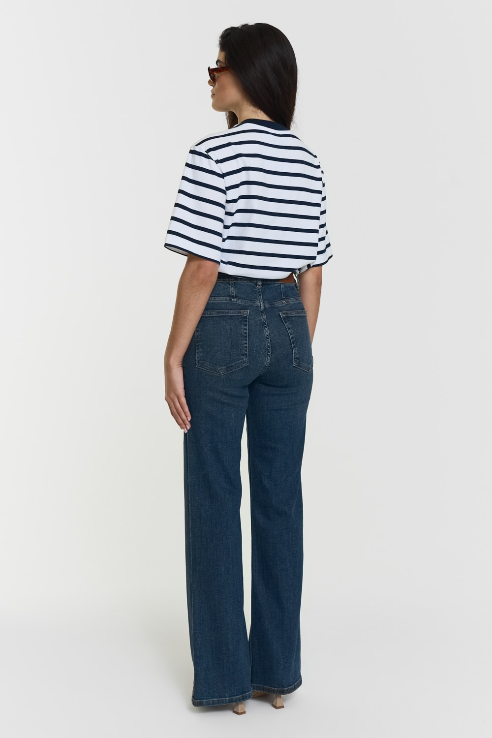 The model is 171 cm and wears size 26. Introducing our Cleo jeans, featuring a flattering high waist and flared leg for a vintage-inspired look. With a stretchy fit, 4-pockets with patch pockets front, along with a zip fly and belt loops.