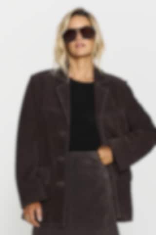 Please note: If your Vaiana blazer has fold marks, simply rub gently with your finger or a suede brush. The marks will also disappear naturally with wear. Due to the premium suede this jacket is heavier than average, adding to its rich look and long-lasting quality. The Vaiana Suede Blazer features an oversized fit with shoulder pads. It's fully lined and comes with welt pockets with flaps and a three-button closure. The model is 171 cm tall and wears size S.